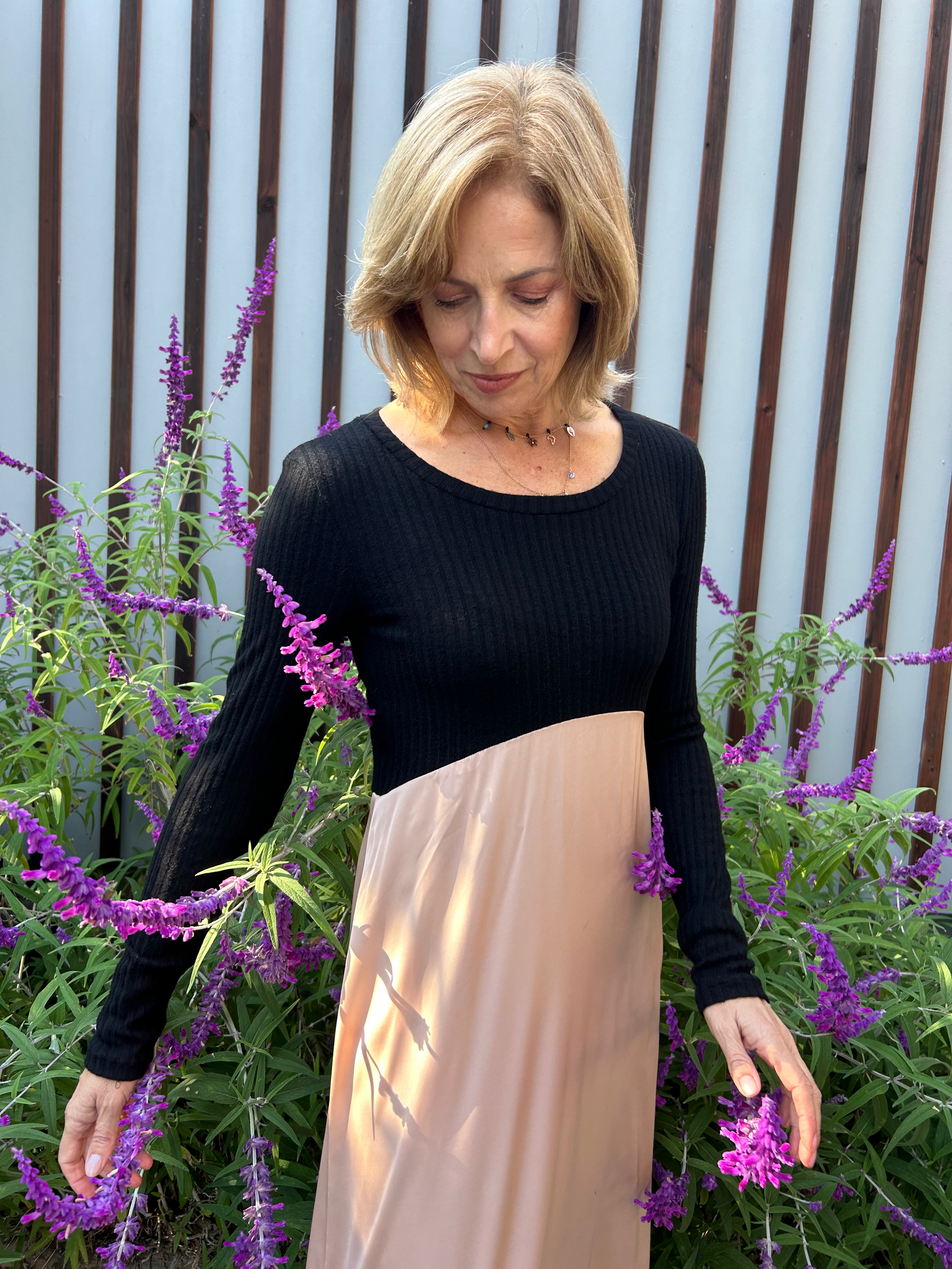 Cashmere knit and Armani satin